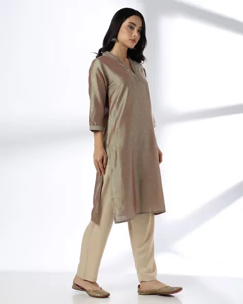 Women Straight Kurta with Embellished Yoke