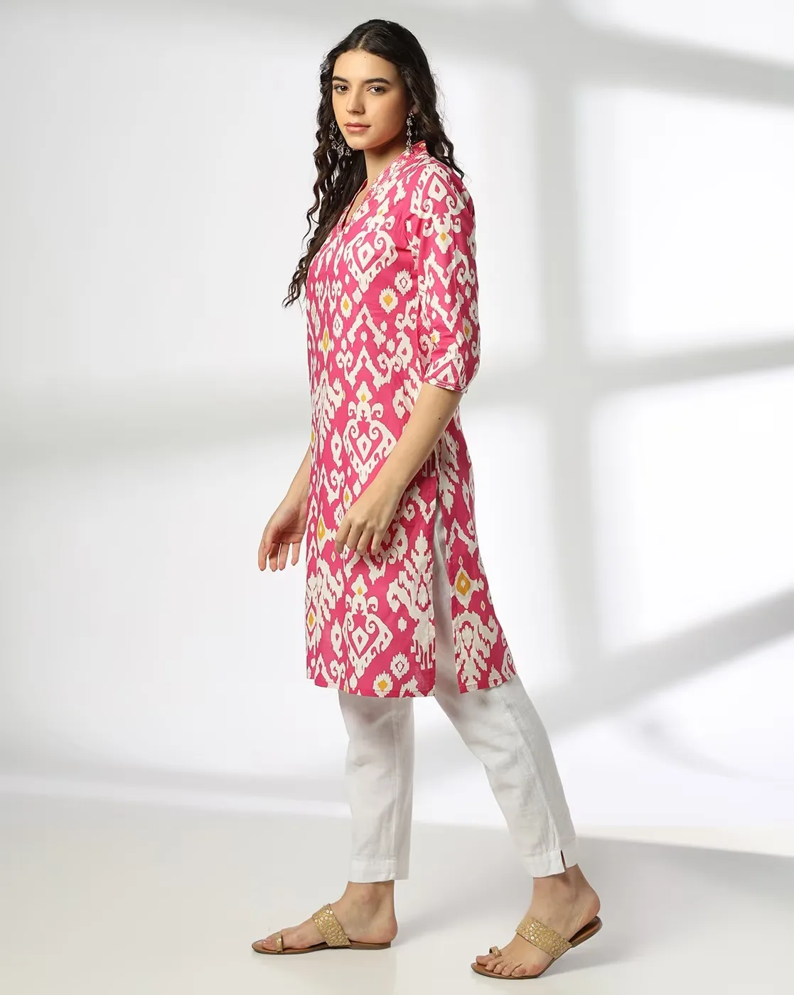 Women Leaf Print Relaxed Fit Round-Neck T-Shirt